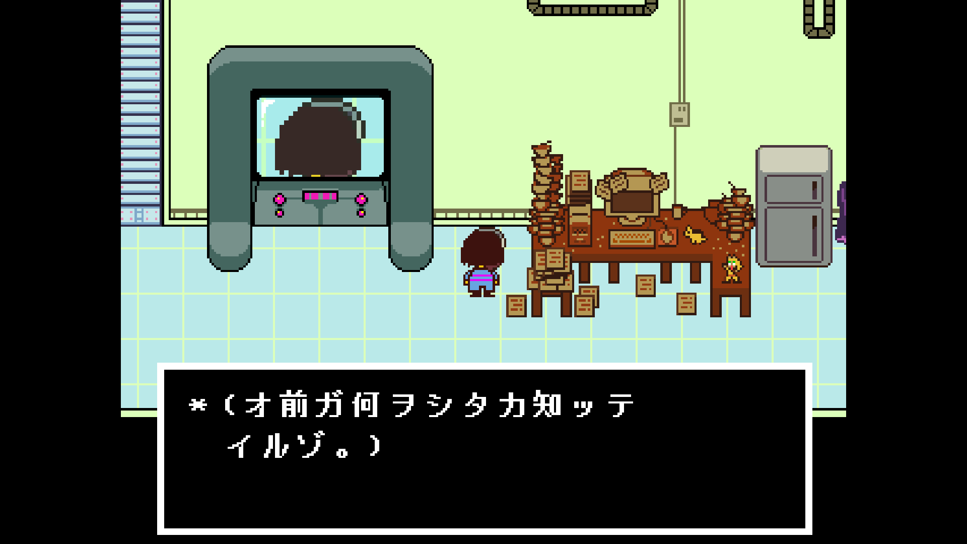 正直、序盤はAlphysをそこまでよく思ってなかった……というのは違うか。PapyrusもUndyneも気のいい感じのキャラだったし、これまでやってきたゲームで、隠しカメラで主人公の動きを監視するような奴が良い奴だった試しがなかったもので警戒心はかなり強かったね。
